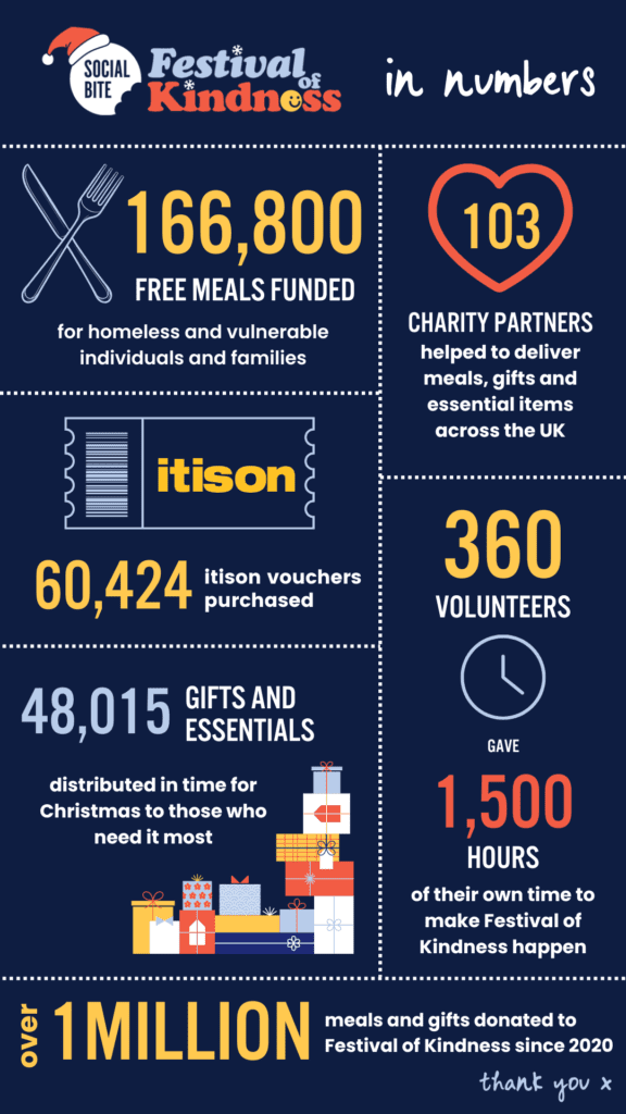 To all our supporters, a heartfelt thank you from everyone at Social Bite for making the festive season and winter months that bit brighter for those who really needed it.
